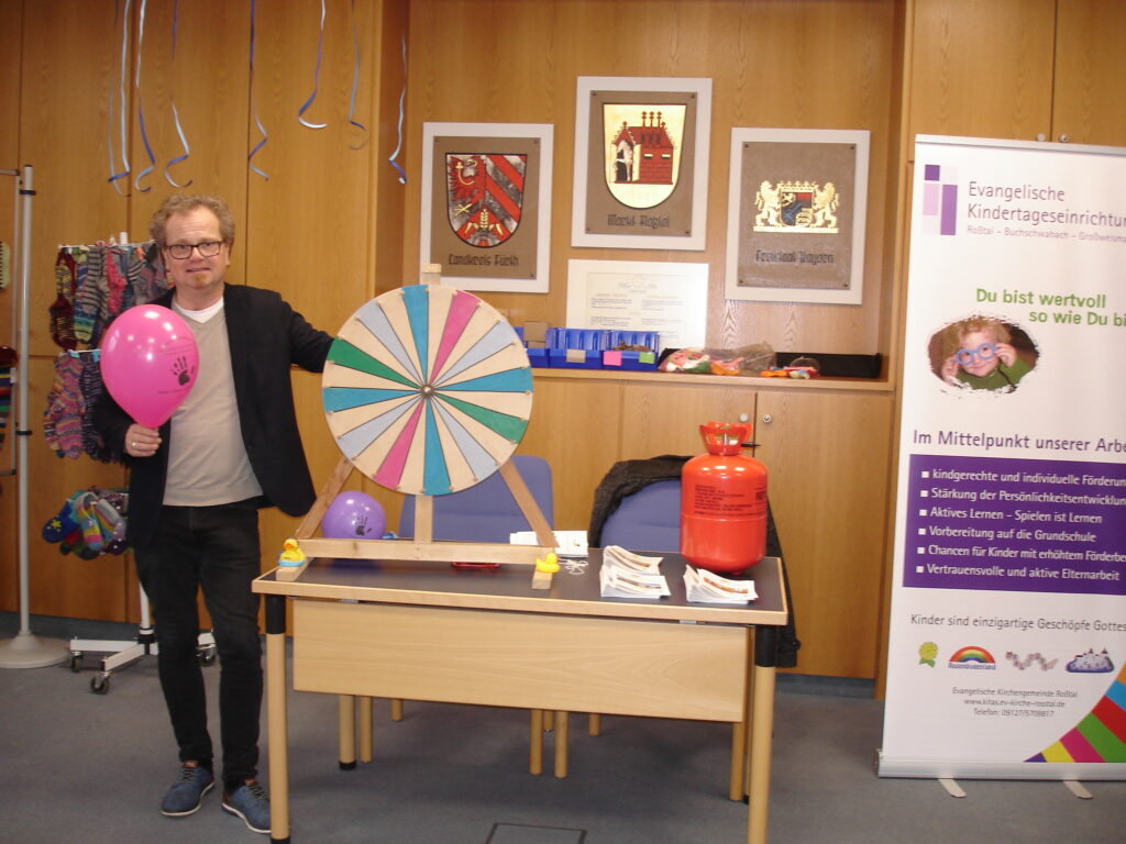 Unsere netten Nachbarn von den Evangelischen Kindertageseinrichtungen zog viele Kinder an, die unbedingt mal am Glücksrad drehen, und Gummibärchen, Luftballons und anderes gewinnen wollten
